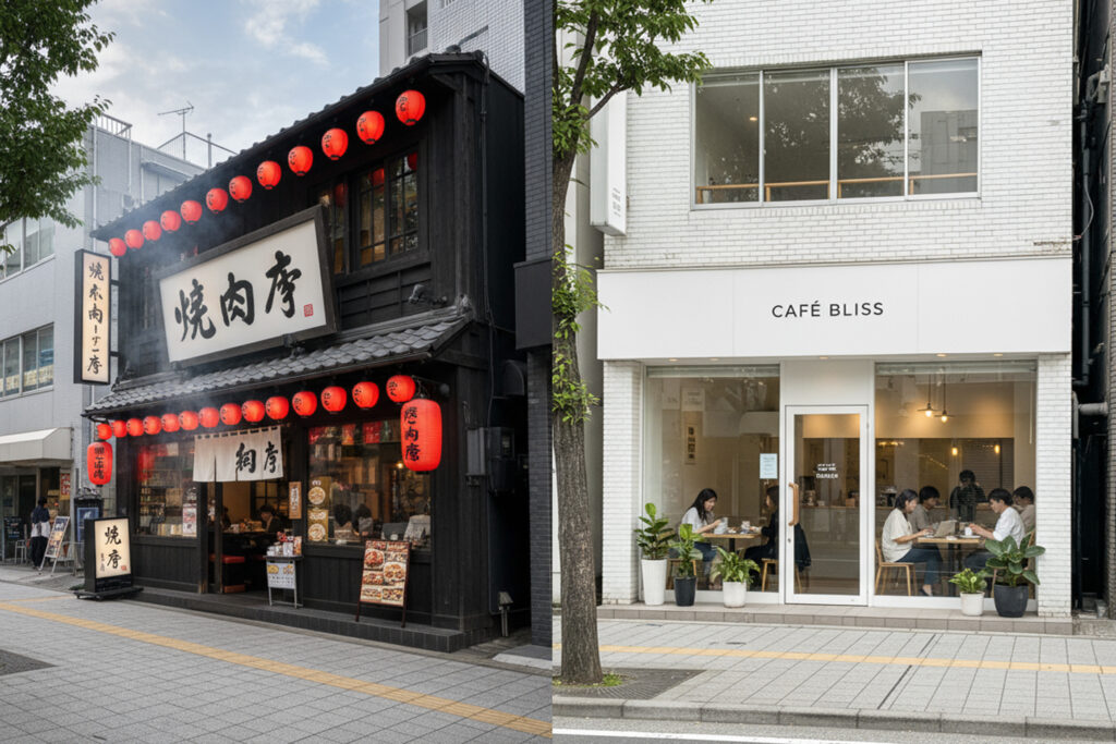 一般的には、「重飲食」は焼肉や中華等の油を多く使ったり、匂いが強い業種、「軽飲食」はカフェやバー等の調理があまりなく油や匂いがあまりない業種を指しますが、あまりはっきりとした明確な線引きはないようです。